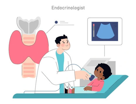 A pediatric endocrinologist treats hormone-related conditions in children such as growth disorders, childhood diabetes, thyroid problems, early or delayed puberty, and other endocrine gland disorders.